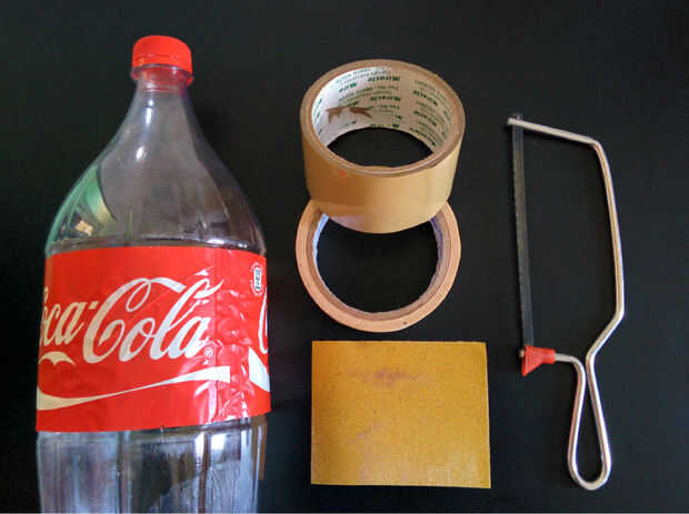 - Una botella pet de refresco de 2.5 litros, prefiero la botella que tiene un top liso con curvas sin cualquier protuberancias por diseño.