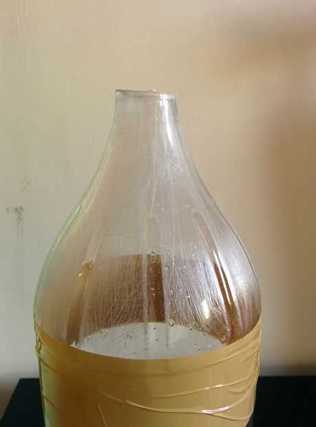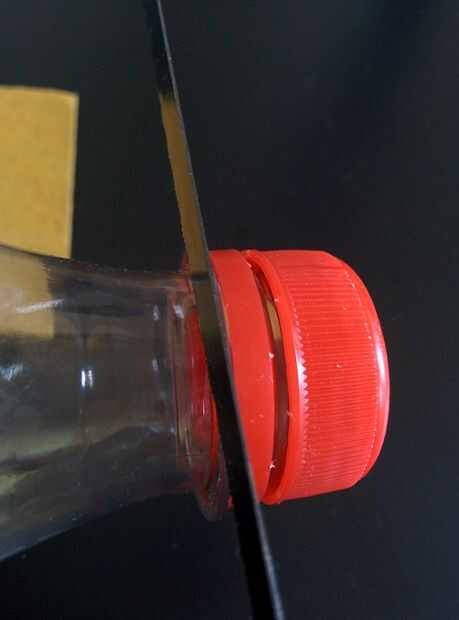 Mayoría de las botellas del animal doméstico tiene un bache pequeño o a veces más grande (o curva si les gusta ) cerca de la etiqueta para la etiqueta no resbale. Esta protuberancia puede ser un problema mientras se intenta deslizar el hilo de papel hacia arriba. Así que vamos a intentar hacer menos desigual por que se pega una capa de cinta alrededor de ella.