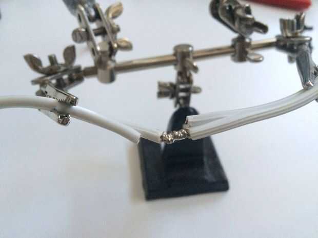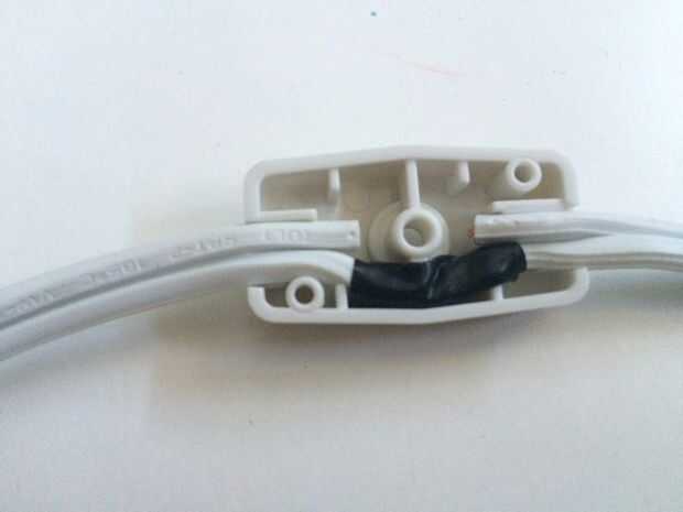 Cortar y recortar el cable de la lámpara: Retire los tornillos del interruptor de la lámpara y abrirlo para mostrar el cable interior. Un lado de la cuerda es continuo, y el otro se rompe con los dos extremos perforados por el interruptor - mira bien por lo que podrás poner detrás junto más adelante. Cortar el lado de continuado para que el extremo del cable del zócalo es gratis, y luego perfore un pequeño agujero en el lado del molde y tire del cordón a través de. Corte el cable a la longitud si prefiere, luego corte y pele los extremos para que los dos extremos más largos pueden soldarse juntos. Si pierde la pista de cual es cual, busque crestas - como puedes unir las hebras rugoso juntas los lados lisos juntos, no importa qué lado el interruptor está encendido. Soldar los dos extremos más largos entre sí y envuelva con cinta aislante, luego insertar en la parte inferior cambiar de vivienda. Cierre la caja con la parte superior, asegurándose que los dientes de metal pequeño en el lado penetran los filamentos cortos del cable y asegúrelo con la tuerca y el tornillo que quitó al principio.