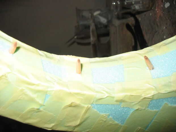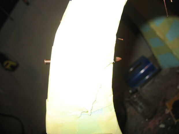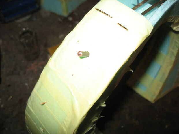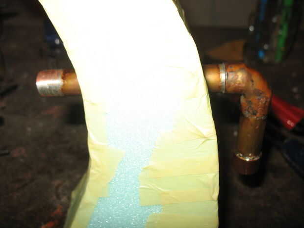 Después de que el uso de este tubo de cobre de la cosechadora marca un punto en el interior de la lámpara y un lugar en el exterior, recorto y colocar el tubo a través de.