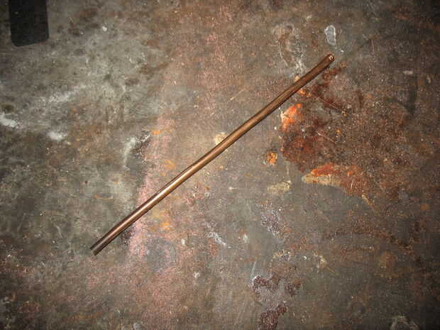 Usé una barra de cobre porque tiene un aspecto agradable a él. Esta caña exacta "" me ayudó con una rueda pinchada. Estaba manejando cerca de un sitio de construcción y entró, por supuesto, sin mi permiso en el neumático. Pero estoy seguro de que usted será capaz de encontrar uno en un cable eléctrico antiguo o en una tienda especializada.