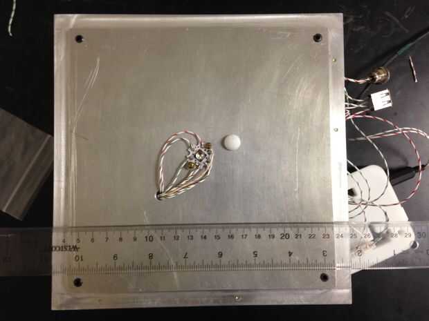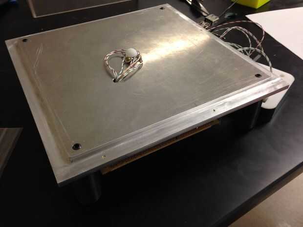 una sección de 8,25 "x 8.25" de aluminio de 3/8" de espesor.