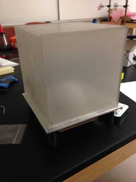Se perforaron agujeros de montaje para ambos perfboards, y un agujero fue perforado un poco del centro para que los cables del LED podrían canalizarse a través de la Junta. Nos encamina nuestro pedazo de aluminio tales que el cubo de 8" encaje en la parte superior para un acabado limpio. Aplicamos cinta aislante a la parte inferior de la lámpara, así que podríamos atornillar el perfboards en la lámpara sin preocuparse por el contacto eléctrico no deseado. Los tres difusores extraíbles fueron colocados en la parte superior del LED para difundir la luz.