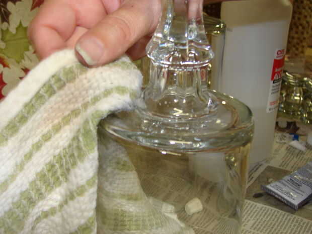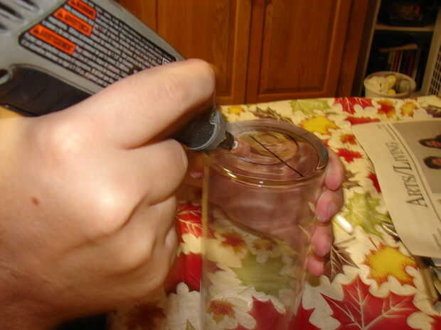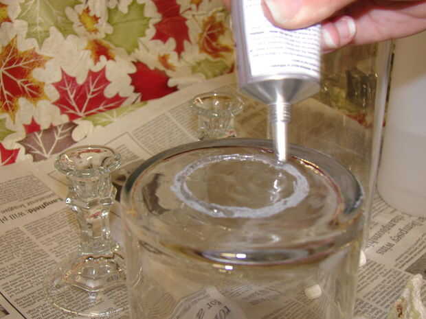 Aplicar pegamento de cristal a la rugosa superficie del huracán y fije el titular de la vela.