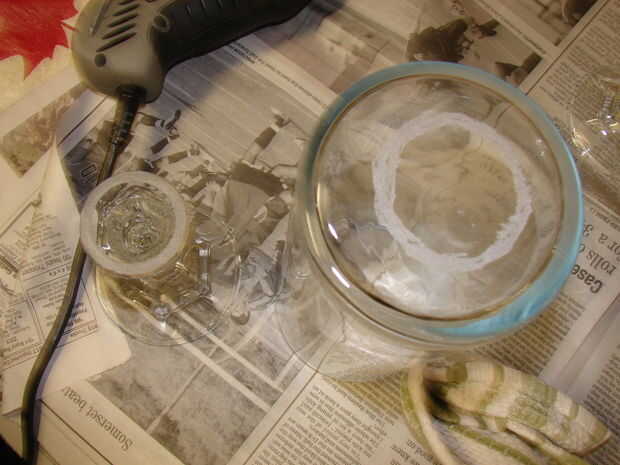 [si ha elegido usar pegamento en su lugar, acaba de poner el pegamento en el interior del círculo y limpiar las marcas de fuera antes de agregar el sostenedor de vela.]