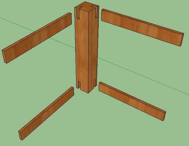 decidí usar juntas de mortaja por su fuerza y para ocultar las juntas para un aspecto más limpio. Esta es una ilustración 3D de la carpintería.