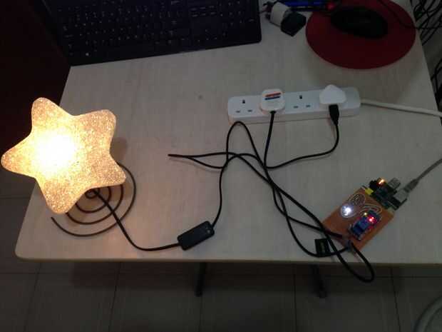 Este proyecto utiliza el iPhone y una frambuesa pi a control remoto la lámpara. El iPhone y la frambuesa pi están conectados al router wifi. La lámpara encendido/apagado comandos son enviados desde el iPhone y recibido por el sistema de frambuesa pi integrado. Luego la frambuesa pi desencadena la IO para controlar la lámpara por un relé. La lámpara puede sustituirse por otros aparatos electrodomésticos. El software está escrito en Python y puede ser fácilmente puerto para otros dispositivos.