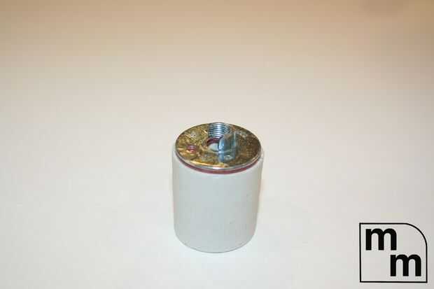 Nota: Este paso es opcional. Si usted no se siente cómodo realizar este paso o no tienen las herramientas para cortar el eje de metal, puede dejar la toma conforme a su diseño y el resultado será que su socket de porcelana pegaremos encima de un 1/4 adicional ' de la parte superior de la base de la lámpara. El diseño original tiene la toma aproximadamente 1/8" sobre la parte superior de la base de la lámpara. Sin esta modificación se adhieren a la toma de hasta unos 3/8" sobre la base de la lámpara.