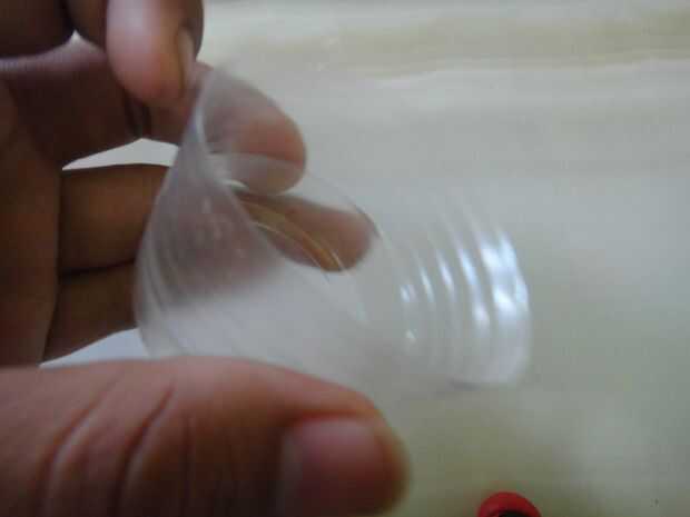 Al comienzo de tomar la Copa y cortar por la mitad. Deseche la mitad superior, ya no necesitamos la mitad superior.