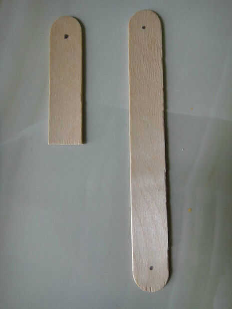 En primer lugar uno de los palitos y cortar por la mitad. Ahora toma 4 palitos y el arte solo cortar y dibujar un punto en cada uno de sus extremos.