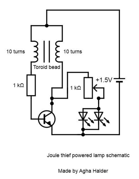 Un ladrón de joule es un minimalista Armstrong auto-oscilante voltaje booster que es pequeño, bajo costo y fácil de construir, por lo general utilizado para la conducción de cargas ligeras. Se puede utilizar casi toda la energía en una batería eléctr