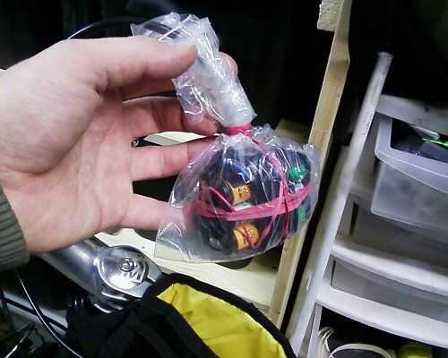 En este momento mantener las baterías en bolsa de plástico envuelta con bandas de goma ;-) (Sé se ve feo pero es solamente solución temporal). Afortunadamente tengo marco de Topeak la bolsa así que puedo mantener la "batería" dentro de momento.