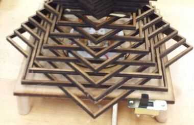 Crear una lámpara cubo de madera de apiladas piezas de madera.Paso 1: Crear tus piezas de madera Usted necesitará un montón de piezas idénticas de madera para crear esta lámpara. Comprobar las dimensiones y cantidades en la imagen de arriba.Además de