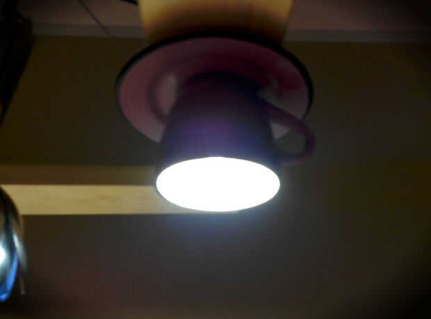 he tenido esta idea durante mucho tiempo y cuando leí sobre el desafío de la taza de café pensé que este sería el momento para dejar esta idea se convierta en realidad: la lámpara de pie esfera café taza!Debo admitir que no es totalmente original. Ac