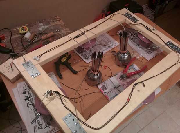 10. las cucharas en forma deseada y pegar en el zócalo, también utilicé un alambre de cobre a apretar y ocultar la toma de