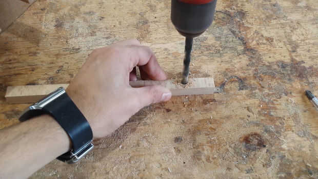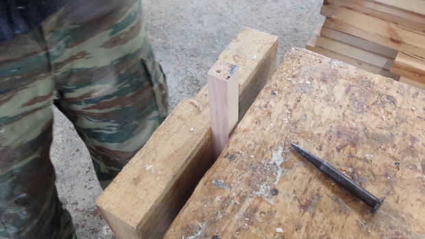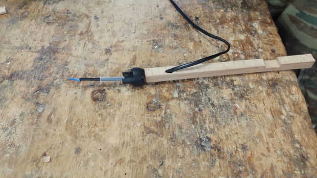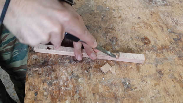 Para el paraguas eje corte un pedazo de 1.5x1.5x25 cm de madera y hacer una muesca 2.1x0.6 cm solo para mano de stickmans.
