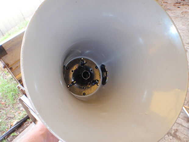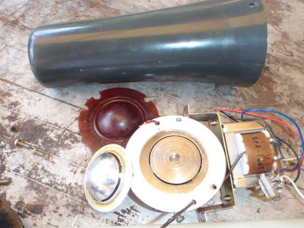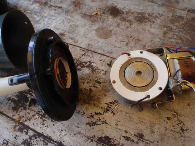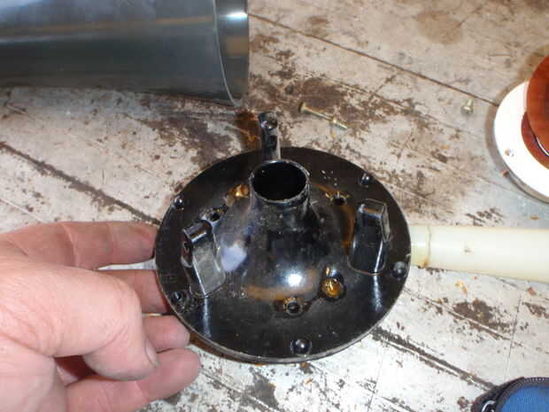 Esto es muy fáciles sólo tienes que ir tuercas con un destornillador y tire de ella aparte. Hay un imán allí que estoy pensando en usar para otro proyecto, pero el sólo 3 bits que necesita son el cuerno, la cubierta posterior y el disco de bakerlite que está en el centro.  Oh y los 3 tornillos.