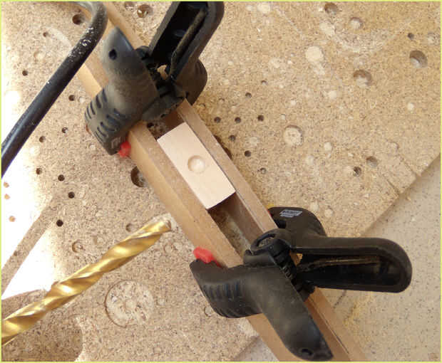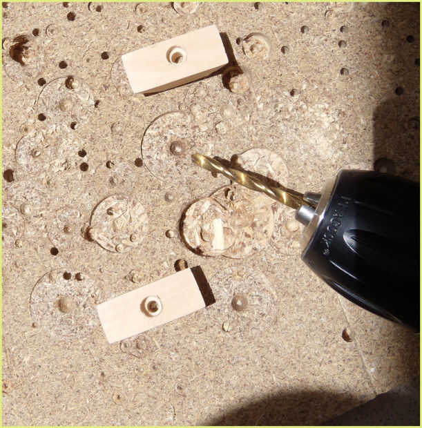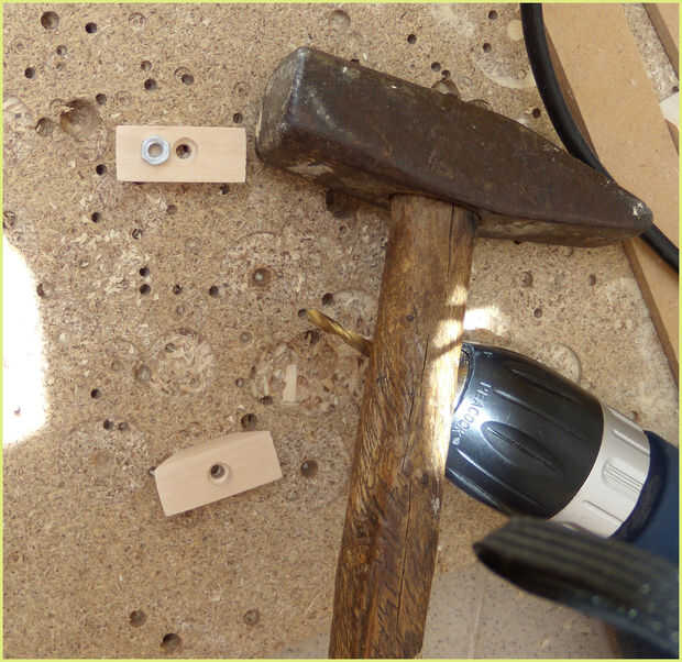 quería cubrir las tuercas de madera tan el la lámpara puede lograr un mejor aspecto general. Lo que hice fue tomar la tuerca y ponerlo en un pedazo de madera y apriete el perno que mantiene la lata en su lugar.