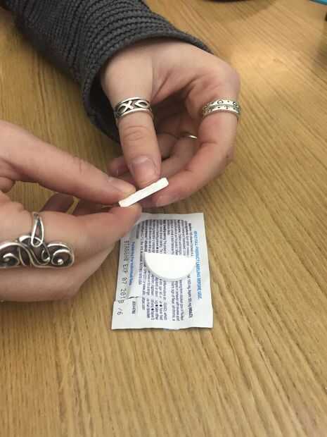 Recoger una ficha de Alka-Seltzer de la caja. Romper la tableta en cuatro trozos más pequeños.
