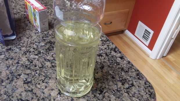 Llenar la botella 1/2 lleno con aceite de Canola. Bastante simple! (Sigue el tema!)