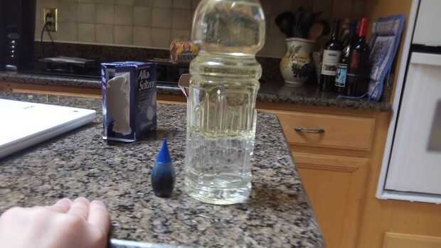 · Botella de agua de aproximadamente 12,7 onzas· 3/4 taza de agua con una taza de medir· 32 onzas de aceite vegetal· Alimentos para colorear, alguna funcionará, un paquete de cuatro botellas de poco· Alka-Seltzer, alguna va a funcionar, solo paquete