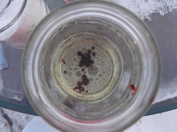 materiales:• Tarro de masón• 2/3 taza agua• 1 taza de aceite de vegetal• 1 o más tabletas de Alka-Seltzer• 2 palillos del resplandor• Tijeras o cuchilloTiempo: Aprox. 5 minutosPaso 1: Añadir aceite vegetal Agregue 1 taza de aceite vegetal.Paso 2: Aña