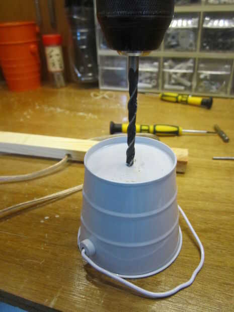 Tomé un pequeño bote de basura (muy muy pequeña) y drlled un agujero en su parte inferior (para que los cables ir lanzaron)