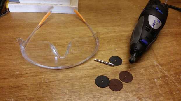 La primera cosa a hacer, es coger la Dremel y la parte superior de la sierra - se necesita para crear cortes delgados en orden para el cable ir lanzó a permanecer allí, a menos que se deslice y caiga.