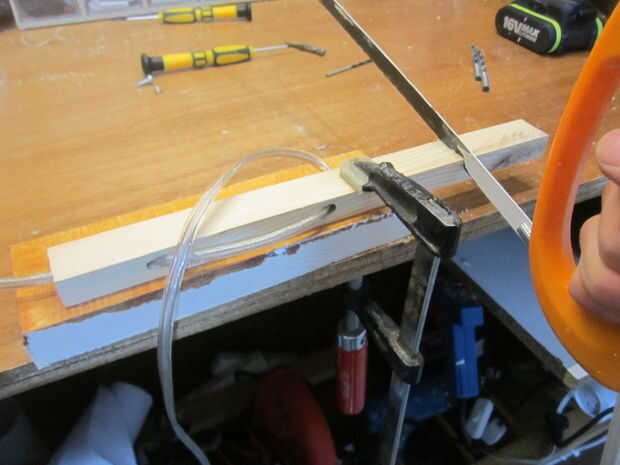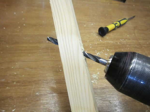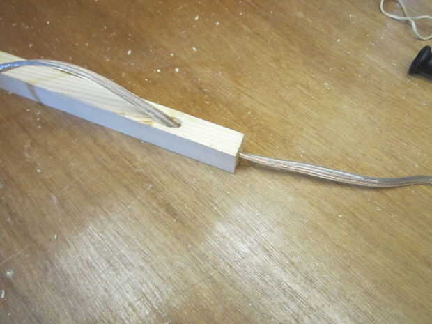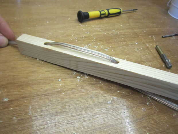 Conseguir el cable dentro de la madera - deja un poco al final para nosotros para poder conectarse a la tira del LED (más adelante)