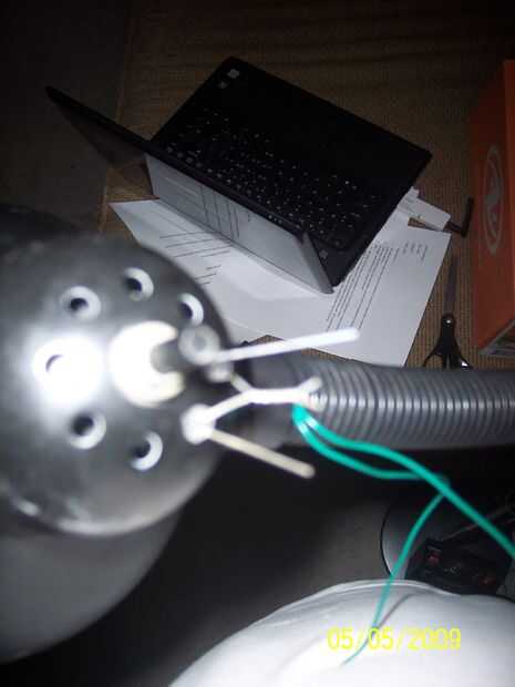 El primer elemento en la lista es atar el cable de positivo de un LED al negativo de otro. Trence las dos piernas. Si lo desea, marque el cable positivo de alguna manera para que usted no perderá que uno es. Usé 2 LEDs en serie, pero puede utilizar otras configuraciones si quieres, depende de su gusto y, posiblemente, presupuesto. Mi lámpara originalmente utiliza una bombilla incandescente de 100 vatios. Consiguió muy caliente por lo que los fabricantes de perforaron de ocho orificios de 5mm en la parte posterior. Acabo de suerte. Algunos de ustedes pueden tener que perforar los agujeros a ti mismo. Sólo asegúrese de que son 5mm. Y tener mucho cuidado, que un amigo mío hice daño taladrar un agujero en el metal. Una vez tuerza los LEDs, en los dos agujeros que están muy juntos. Repita hasta que usted llene todos los agujeros posibles o quedarse sin LEDs, lo que ocurra primero. En el siguiente paso.
