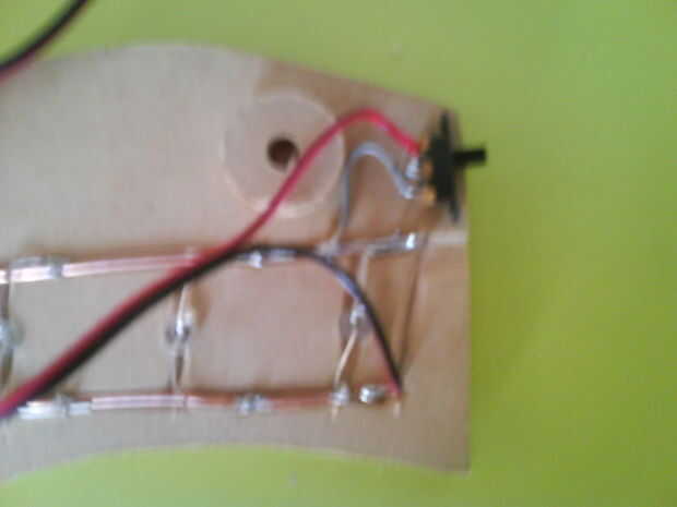 Después de que un circuito eléctrico se hace con las patas de los LED. Una batería y un interruptor se conectan en el circuito.