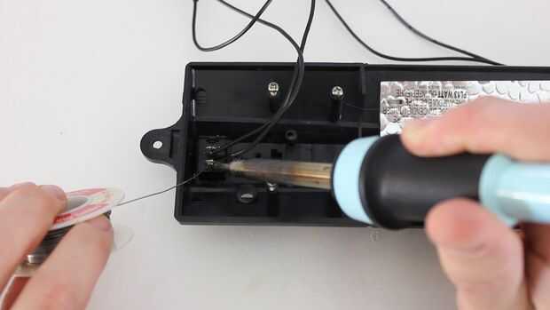 Introduzca el cable de alimentación en la cubierta de la cabeza de la lámpara. Luego de la soldadura de los cables en el lugar apropiado de la placa de circuito. También el interruptor de la lámpara en el lugar apropiado en el tablero de la soldadura. Si la lámpara no tiene un interruptor fácilmente accesible, usted necesitará agregar uno. Funcionará cualquier pequeño interruptor de bloqueo.