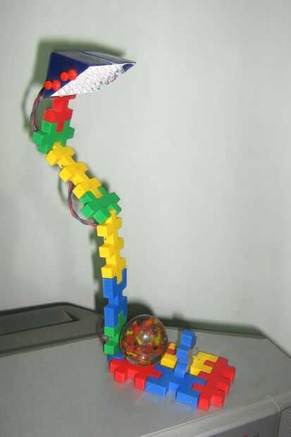 En la compra de comestibles en el supermercado Lidl en los países bajos, mi esposa tuvo un muy barato (2.99 euros) lámpara LED con las fibras en la parte superior. En esta lámpara de LED hay tres LEDs, uno rojo, uno verde y uno azul que crean un efec