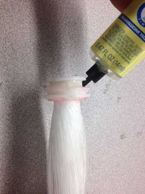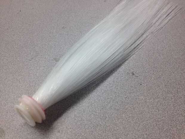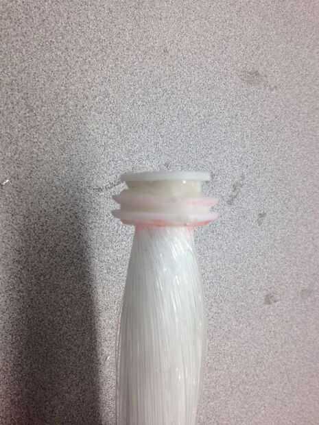 1. Hay dos partes muy importantes que tendrán que agregarse a la fibra óptica. El primero es el equipo que se convertirá la cosa entera y la segunda será un espaciador. Es muy importante atar el extremo de la fibra óptica con una pequeña banda de goma para no dañar ninguno de los filamentos individuales.