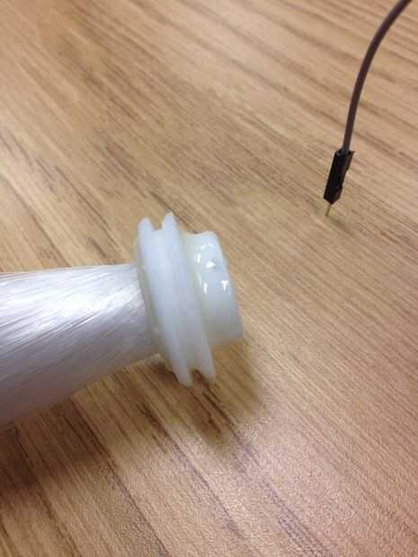 2. La forma en la cual el motor girará la fibra óptica será a través de una pequeña banda de goma y engranajes con bordes lisos. Así que he diseñado un pequeño anillo para pasar la fibra óptica que tenemos de epoxy para sostenerla en lugar.