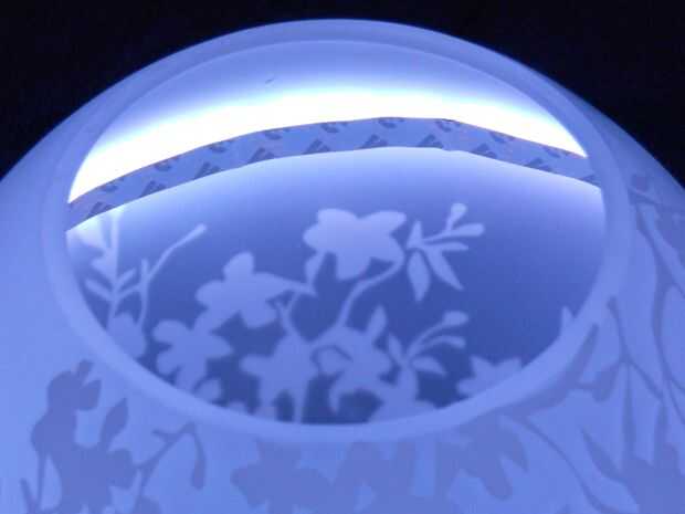 Pegué la cinta con cyanoacrilic dentro de la lámpara en forma de espiral.