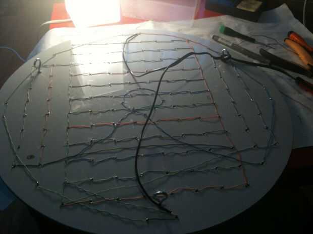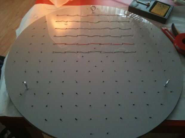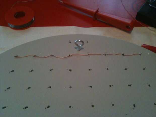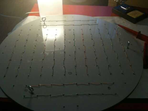 La parte difícil fue respetar el diseño de la secuencia original de LED. Básicamente, representa una red de 18 cadenas más pequeñas de 8 LED ' s, en paralelo y ya que mi patrón era más de un círculo, los cables funcionan un poco en todas las direcciones, pero estoy feliz de decir que trabajó en el primer intento, y que sólo me olvide soldar un extremo de una cadena de 8 LED ' s, por los LEDs no se enciende para arriba para que ahora.