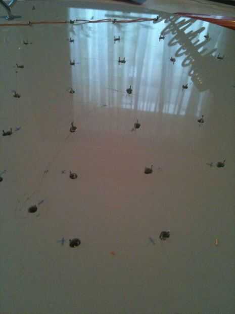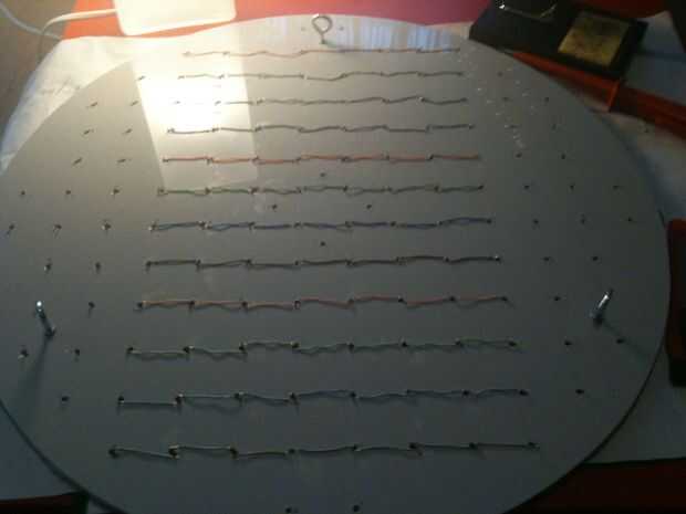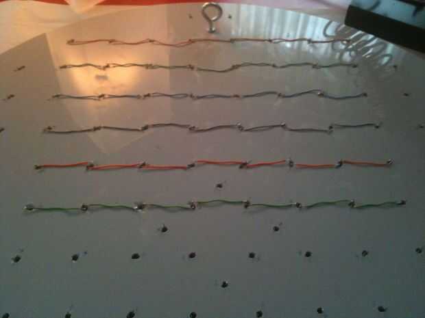 144 LEDs + dos pernos cada uno + a veces más de un cable soldado a uno de los pines = un montón de diversión!