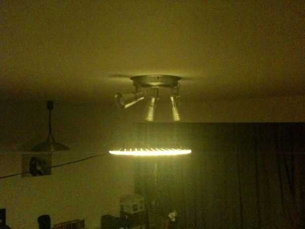 Para no es bien suspendido, además todavía tiene que ser enchufado, pero con todo: funciona, solo tengo que arreglar ese sentido último que se me olvidaba, poner pegamento caliente en todos los puntos de soldaduras para protegerlos, y se trata!