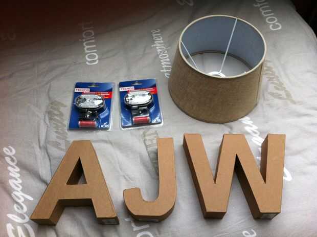 -Las letras de cartón que usted desea utilizar. He utilizado las tres iniciales de mi padre (AJW). Las letras de cartón que son unos 17cm de alto.
