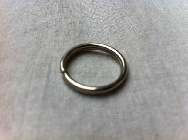 Ahora podemos conectar el llavero a las bandas de goma. Cuando unen ellos tenga cuidado de que no coloque las bandas elásticas. Cuando el anillo se une a todas las bandas de elástico tres Asegúrese de que el llavero está equilibrado en el centro de la pantalla.