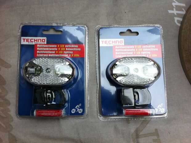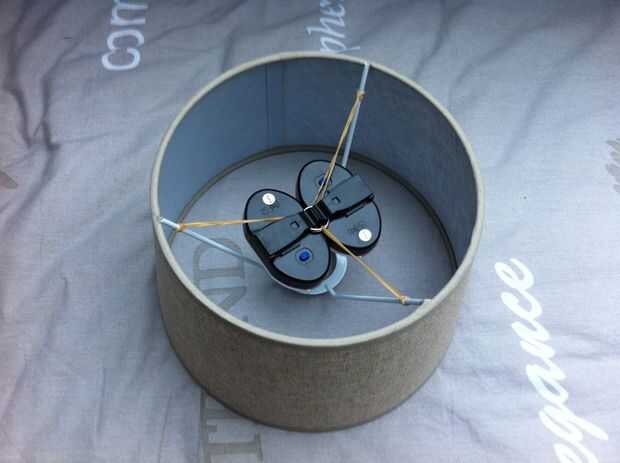 Las fuentes de luz que elegí para este proyecto son faros de bicicleta desde el no necesita cables de electricidad que se hacen un lío. Si también utiliza luces de bicicleta que puede acortar en las luces de la bicicleta para el llavero. Asegúrese de que las luces cuelguen recta para que la luz se distribuirá igualmente. También puede colocar la banda elástica alrededor de las luces para que los apoyen.