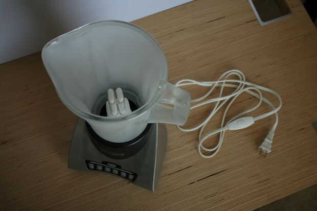 Jarra de lugar en base de la bombilla. Cuidado de no bang la bombilla y romperla cuando se toma el frasco y.