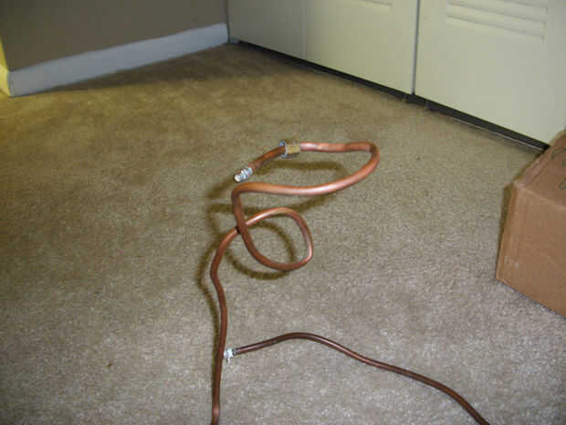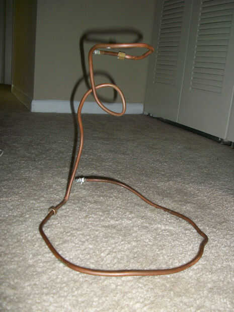 La base está hecha de la tubería de cobre, creo que tenía vino de una nevera.