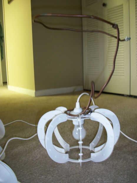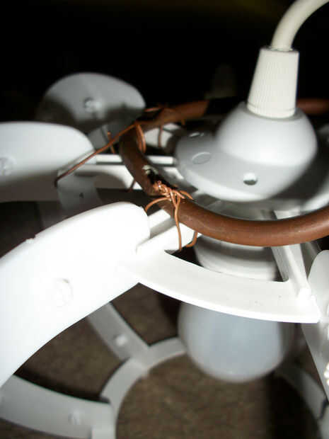 Tapa el tubo de cobre sobre y coloque encima el marco plástico de la luz. El cable debe pasar por el centro. Utilice un cable más fino para envolver alrededor del cobre y la estructura de plástico, para que no se mueve el círculo de cobre. Lo hice alrededor de la mayoría de los radios, para asegurarse de que se llevó a cabo.