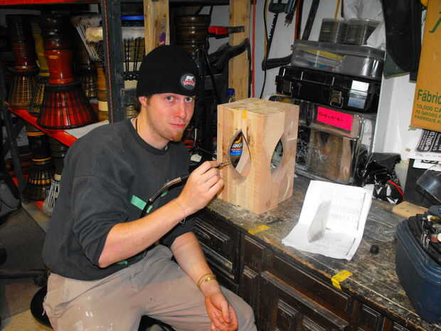 Luego pegado hacia atrás las cuatro piezas juntas para crear la base de Halloween. El trabajo real comienza. Tenemos que tener cuidado de no pegar la hoja en los agujeros. Lesiones muy malos podrían pasar. El modelo romper en un momento, pero nos pega atrás con éxito.