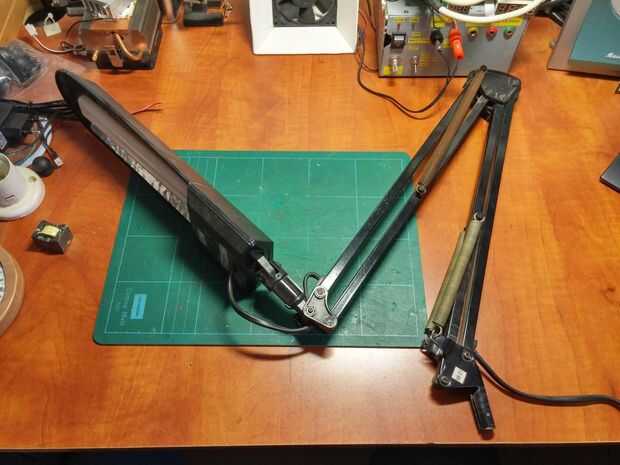 El brazo que me tenía una parte larga fluorescente que quité. 1 tornillo y estaba apagado.