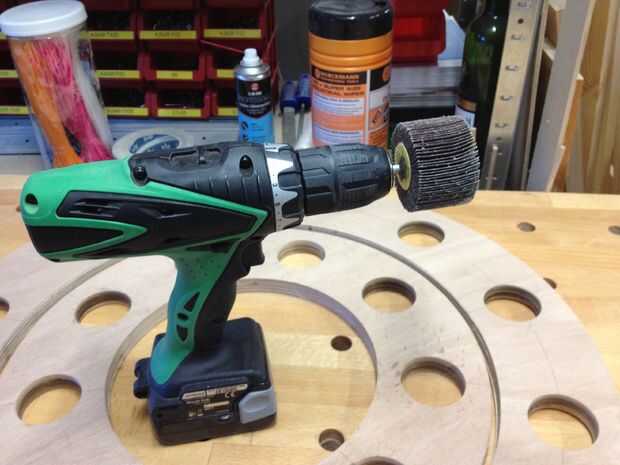 Primero lijar el borde interior de los anillos con un poco lijado (tapa ruedas) encontré en la ferretería. Luego lija en el borde exterior con mi lijadora de mano. Puse los anillos en una manta vieja para evitar que conseguir rasguñado por suciedad en mi banco de trabajo.