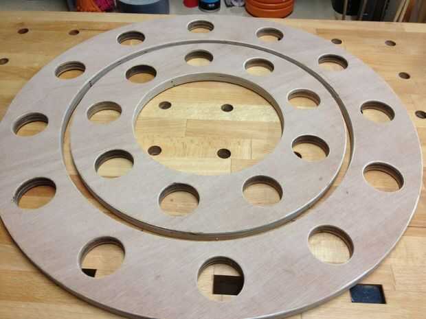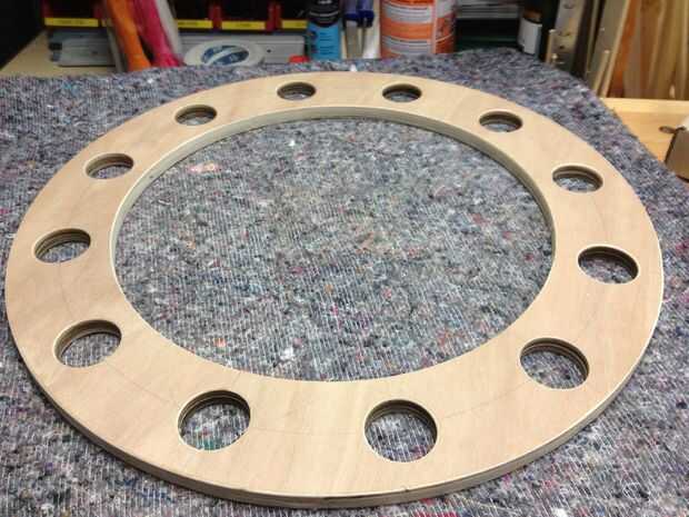 Ahora es un buen momento para lijar los lados planos de los anillos. Sólo usé grano 80 y 120 como estoy utilizando madera contrachapada y lijado demasiado mostrará una madera de color diferente. Ahora deberían desaparecer todas las marcas anteriores. Estoy usando la vieja manta para prevenir arañazos otra vez.