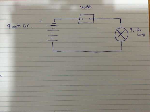 No es terriblemente complicado, pero si eres consciente sobre el conocimiento básico de electrónico, busca este sitio algunos antes de hacer este proyecto. De todos modos, el circuito es bastante simple. Cable del interruptor a la bombilla, la bombilla a la batería y la batería al interruptor. Mi bombilla pasó a ser un foco de 9 voltios, usé una batería de 9 voltios y snap. Sin embargo, si tienes 3 o foco de 6 voltios, ajuste las baterías según corresponda. Consulte el diagrama eléctrico para más explicaciones.